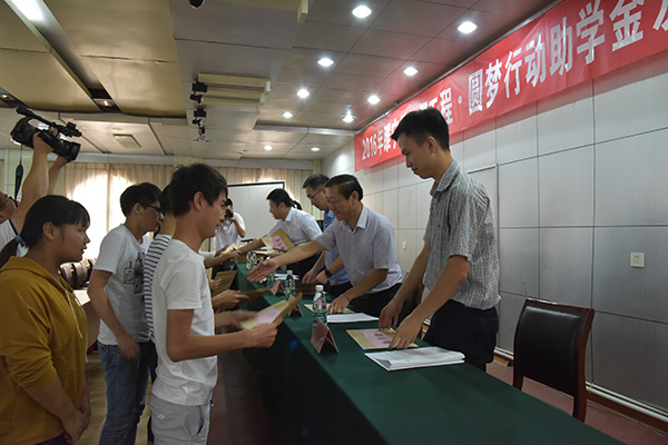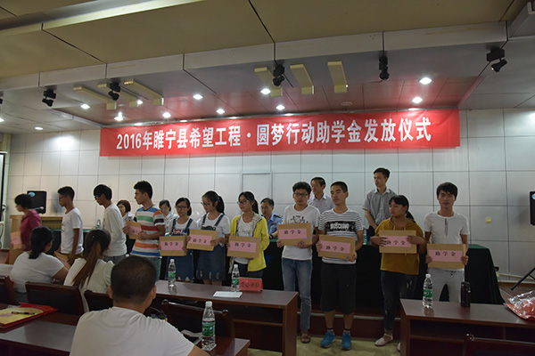 8月26日,睢宁县2016年希望工程·圆梦行动助学金发放仪式在睢宁县卫计委会议室举行。金沙9001以诚为本团委为10位困难家庭的高考子女送去了助学金。